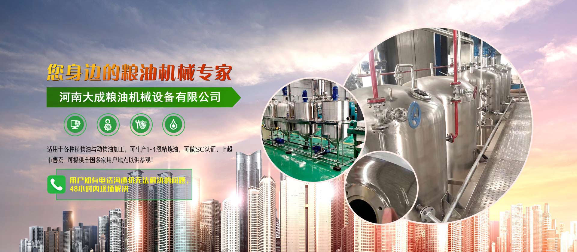 食用油精煉設(shè)備_油脂浸出設(shè)備_榨油機全套設(shè)備--河南大成機械設(shè)備有限公司是專業(yè)從事油脂精煉設(shè)備、油脂浸出設(shè)備、榨油設(shè)備等各類型油脂加工設(shè)備研制與生產(chǎn)的高新技術(shù)企業(yè)。